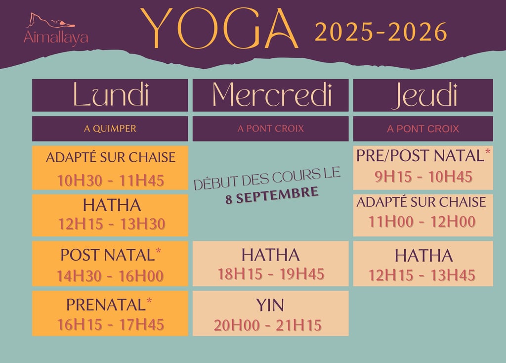 hatha yoga, yin yoga, yoga adapté sur chaise et yoga périnatal à Pont-croix